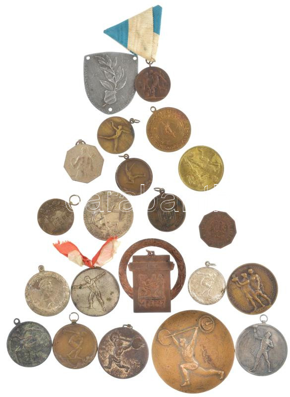 Beschreibung: 21db-os vegyes sport emlék-és díjérem tétel, közte Klaudinyi László (1904-1984) DN "Postás Sportegyesület 1899" fém emlékérem T:2-3