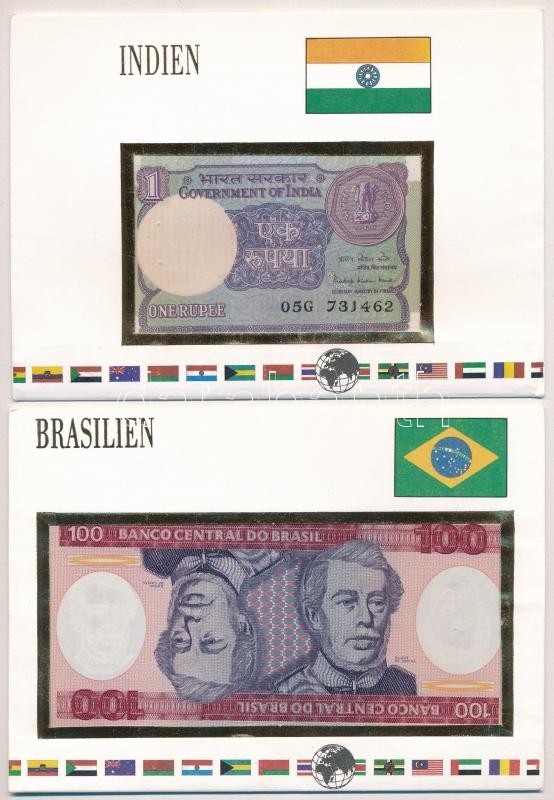 Brazília 1984. 100C + India 1985. 1R, mindkettő bankjegyes borítékban ...