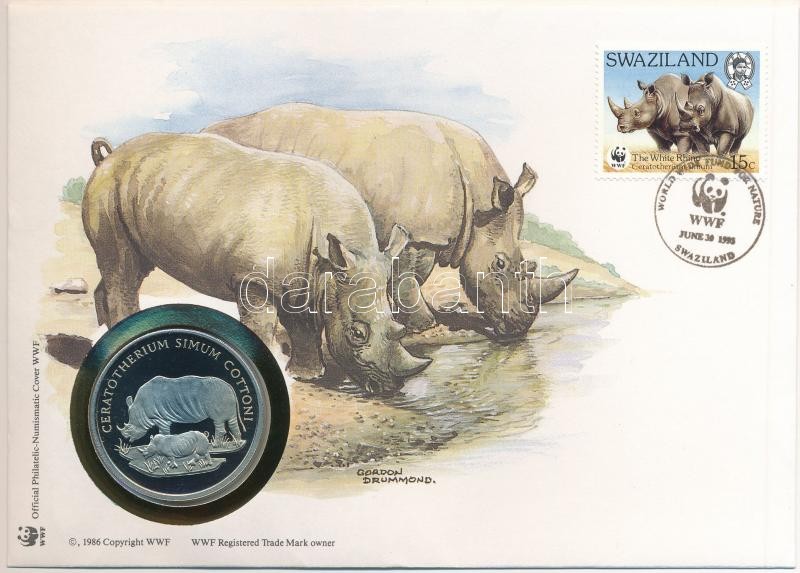 Szváziföld DN (1991) "A Világ Vadvédelmi Alap (WWF) 30. évfordulója - Ceratotherium Simum Cottoni (Északi szélesszájú orrszarvú)" kétoldalas Cu-Ni emlékérem érmés borítékban, bélyeggel és bélyegzéssel, német nyelvű ismertetővel T:PP