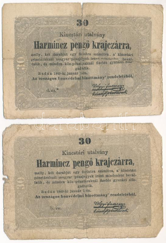 Beschreibung: 1849. 30kr "Kossuth bankó" (2x) T:III- nagyobb szakadás Adamo G103