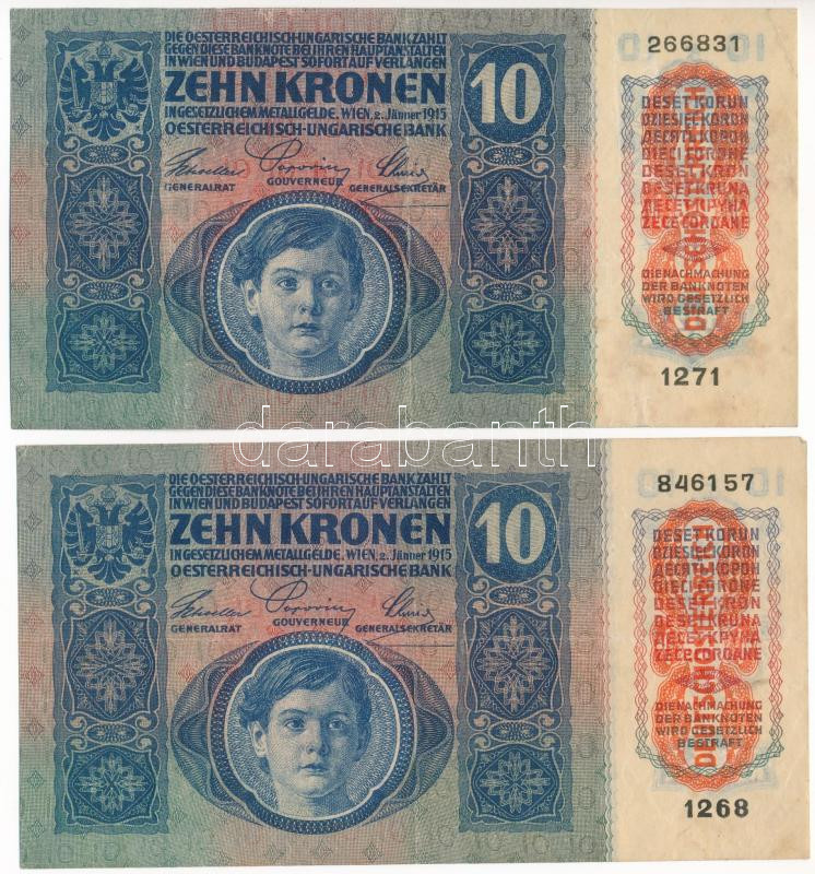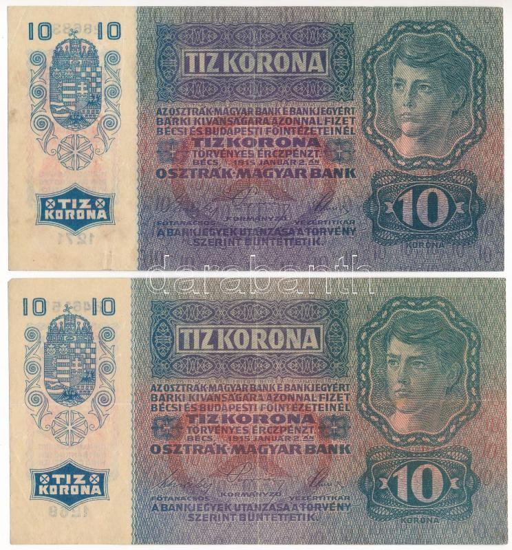 1915. 10K piros "DEUTSCHÖSTERREICH" felülbélyegzéssel (2x) T:III szép papír