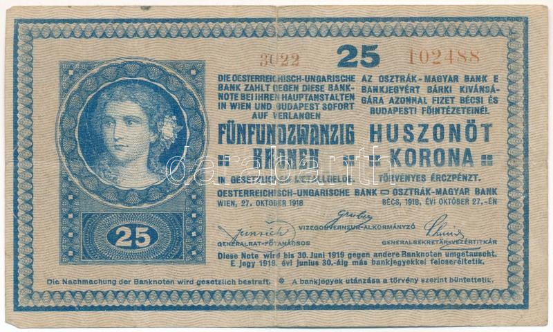 Beschreibung: 1918. 25K "3020" 4mm, sima hátlappal T:III,III-