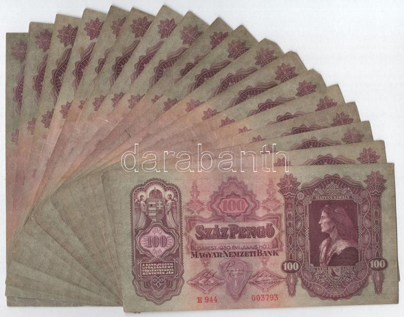 1930. 100P (18x) T:III közte szép papír, folt, firka