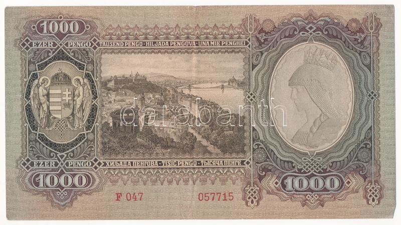Beschreibung: 1943. 1000P "F 047 057715" T:II-,III szép papír