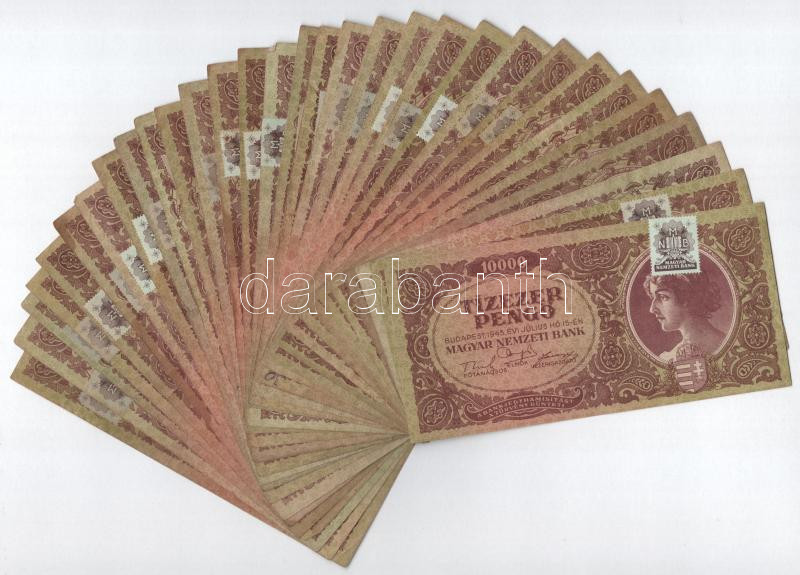 Beschreibung: 1945. 10.000P (31x) közte több bankjegy "MNB" bélyeggel T:III közte folt, kis szakadás