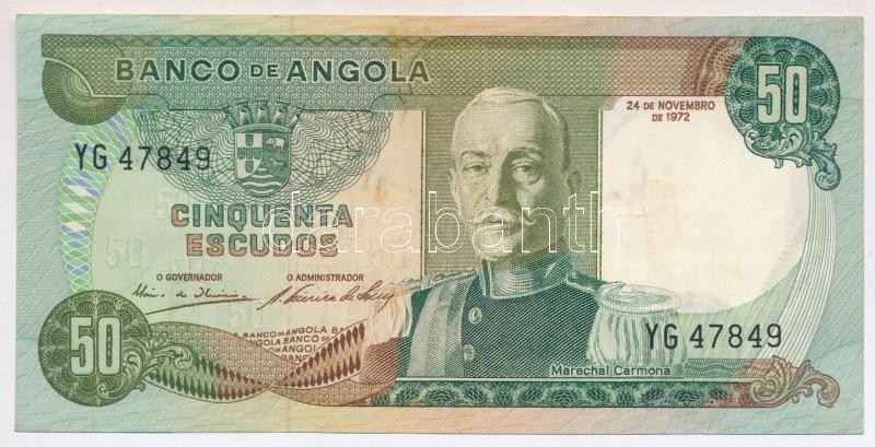Angola 1972. 50 ... https://www.darabanth.com/de/428-Fernauktion/428.0/Numismatik/Weltweit-Banknoten~3000013/Angola-1972-50E-YG-47849-TIII-kis-folt-Angola-1972-50-Escudos-YG-47849-CF-small-spotts-Kra~II2642371