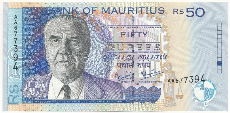 Mauritius 1999. 50R T:I Mauritius 1999. 50 Rupees C:UNC Krause P#50 https://www.darabanth.com/de/428-Fernauktion/428.0/Numismatik/Weltweit-Banknoten~3000013/Mauritius-1999-50R-TI-Mauritius-1999-50-Rupees-CUNC-Krause-P2350~II2737994