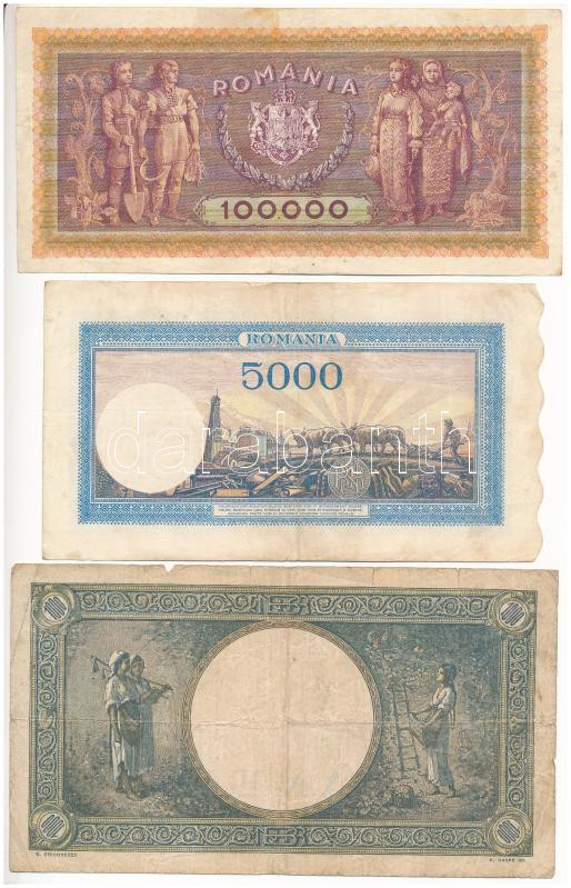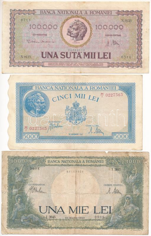 Romania 1943. 1000 Lei + 1943. 5000 Lei + 1947. 100.000 Lei C:F,VG