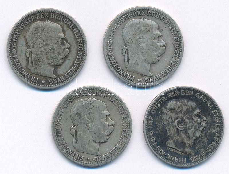 Beschreibung: Ausztria 1893. 1K Ag "Ferenc József" (2x) + 1904. 1K Ag "Ferenc József" + 1915. 1K Ag "Ferenc József" T:2-,3 patina