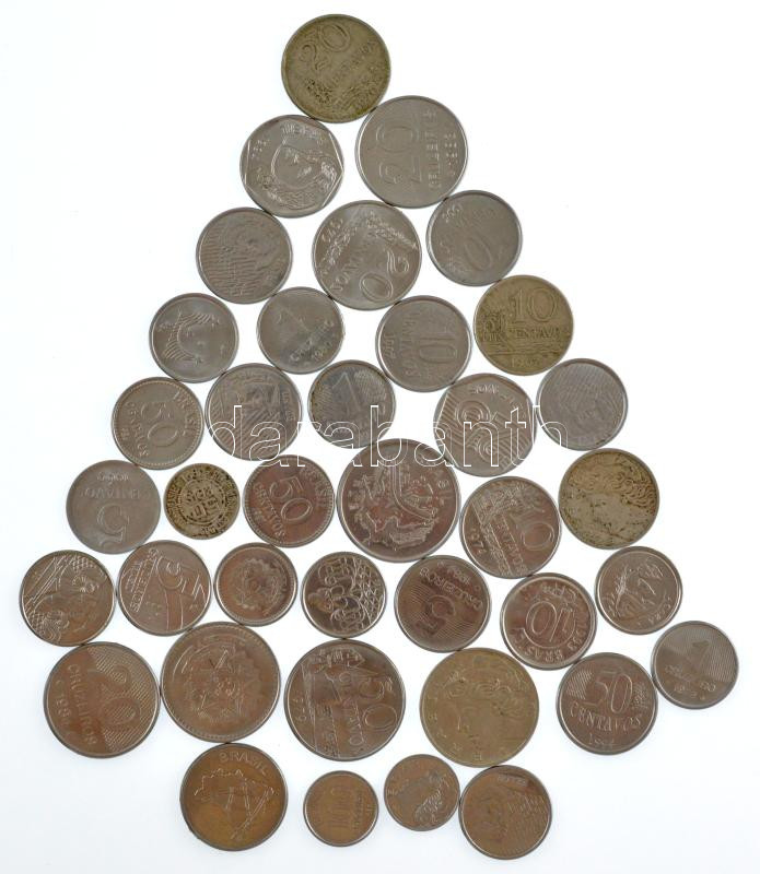 Brazília 38xklf érméből álló tétel, közte 1921. 50R Cu-Ni T:1-3 Brazil 38xdiff coin lot, within 1921. 50 Reis Cu-Ni C:UNC-F