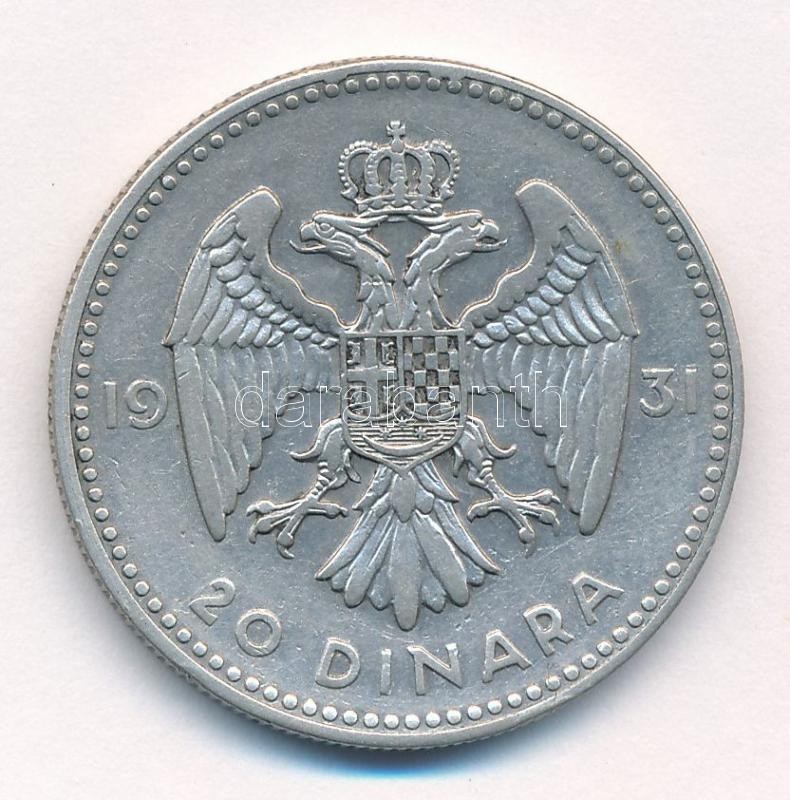 Jugoszlávia 1931. 20D Ag "I. Sándor" T:2- Yugoslavia 1931. 20 Dinara Ag "Alexander I" C:VF Krause KM#11