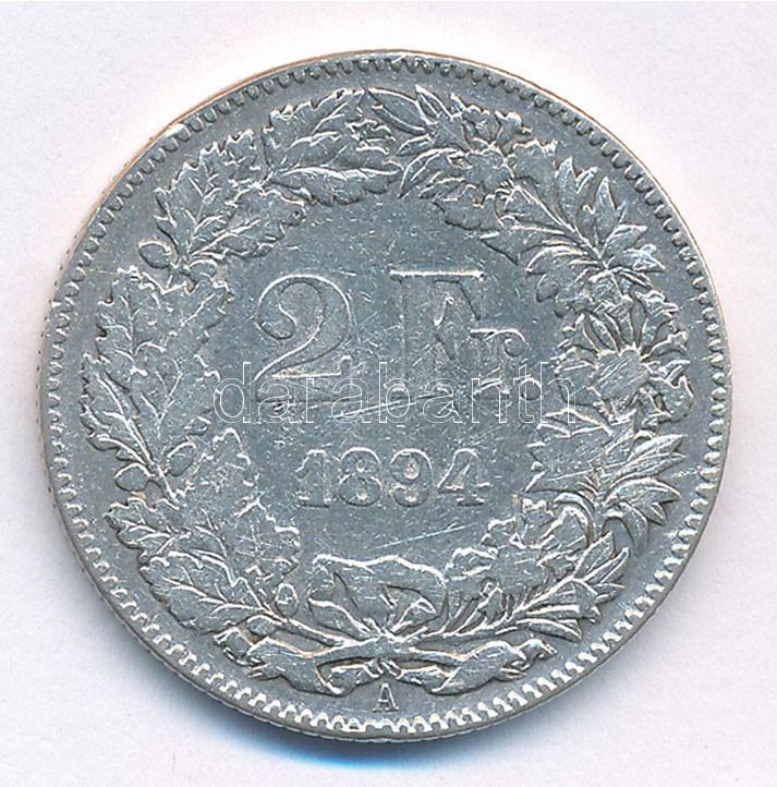 Svájc 1894A 2Fr Ag T:3 Switzerland 1894A 2 Francs Ag C:F Krause KM#21 https://www.darabanth.com/de/428-Fernauktion/428.0/Numismatik/Weltweit-Munzen~3000014/Svajc-1894A-2Fr-Ag-T3-Switzerland-1894A-2-Francs-Ag-CF-Krause-KM2321~II2742112