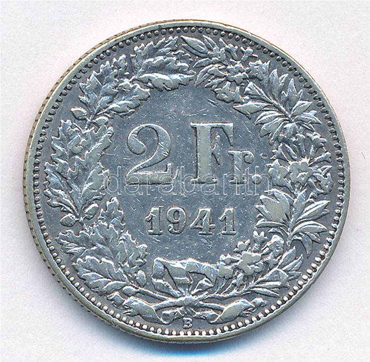 Svájc 1941. 2Fr Ag T:2- Switzerland 1941. 2 Francs Ag C:VF Krause KM#2... https://www.darabanth.com/de/428-Fernauktion/428.0/Numismatik/Weltweit-Munzen~3000014/Svajc-1941-2Fr-Ag-T2-Switzerland-1941-2-Francs-Ag-CVF-Krause-KM2321~II2742100
