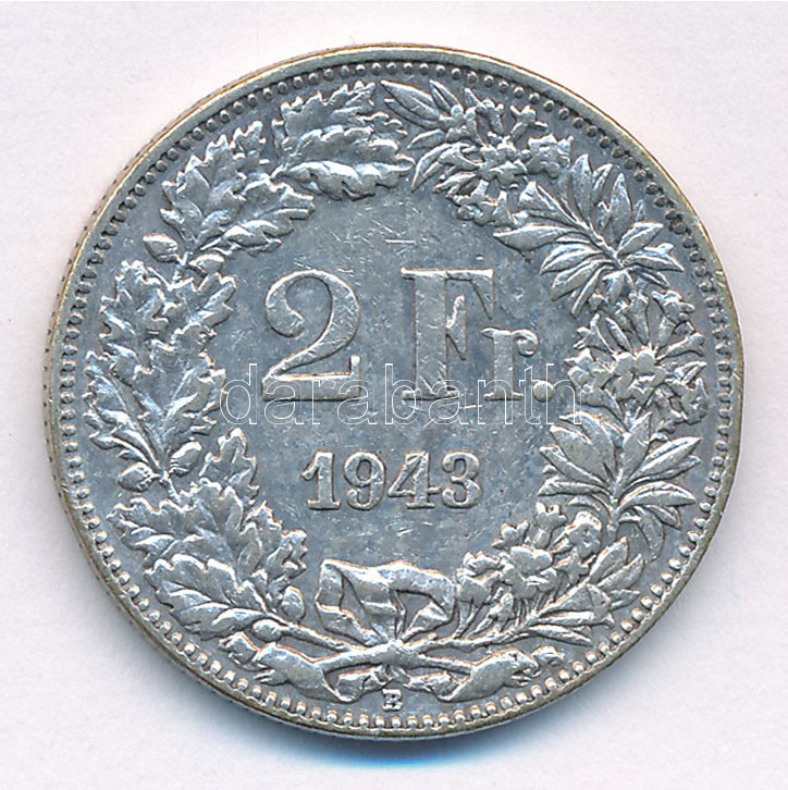 Svájc 1943. 2Fr Ag T:2 Switzerland 1943. 2 Francs Ag C:XF Krause KM#21 https://www.darabanth.com/de/428-Fernauktion/428.0/Numismatik/Weltweit-Munzen~3000014/Svajc-1943-2Fr-Ag-T2-Switzerland-1943-2-Francs-Ag-CXF-Krause-KM2321~II2742098