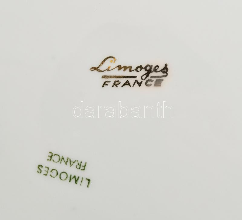 6 darab Limoges tányér, porcelán, jelzett, kopásnyomokkal, d: 25 cm https://www.darabanth.com/de/428-Fernauktion/428.0/Porzellan-Keramik-Glass/Porzellan~500006/6-darab-Limoges-tanyer-porcelan-jelzett-kopasnyomokkal-d-25-cm~II2743211
