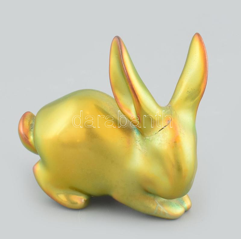 Zsolnay eozin mázas nyuszi figura. Jelzett, RAGASZTOTT FÜL, m: 6 cm https://www.darabanth.com/de/428-Fernauktion/428.0/Porzellan-Keramik-Glass/Porzellan~500006/Zsolnay-eozin-mazas-nyuszi-figura-Jelzett-RAGASZTOTT-FUL-m-6-cm~II2736388