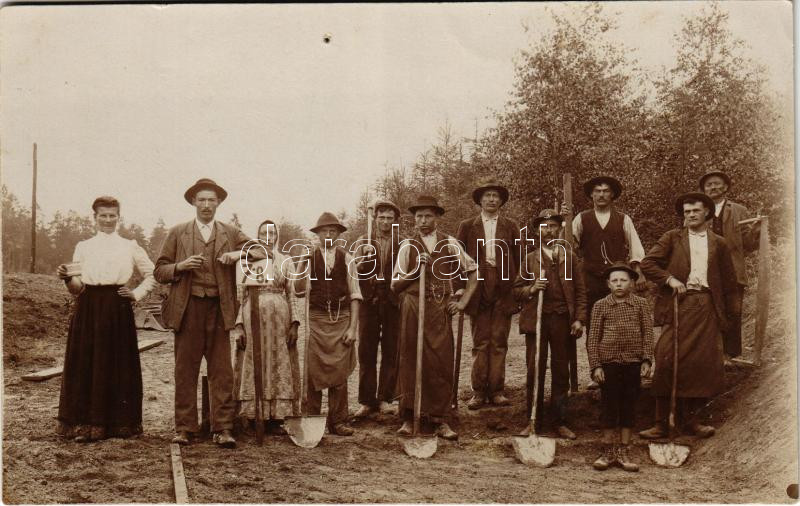 Munkások ásóval / workers with spades. photo (EK) https://www.darabanth.com/de/429-Fernauktion/429.0/Ansichtskarten/Berufe-Uniformen~1500073/Munkasok-asoval-workers-with-spades-photo-EK~II2751287