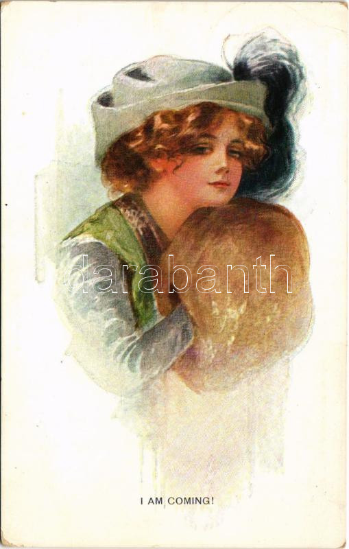 Beschreibung: 1917 "I Am Coming!" New World Girl Nr. 3. Lady art postcard. B.L.W.I. 646/1. (EK)