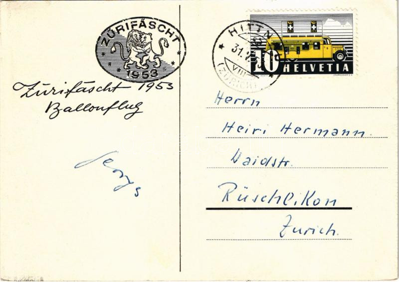 Zürifäscht 1953 Ballonflug / Hot air balloon over Zürich (EK) https://www.darabanth.com/de/429-Fernauktion/429.0/Ansichtskarten/Fesselballons~1500087/Zurifascht-1953-Ballonflug-Hot-air-balloon-over-Zurich-EK~II2751348