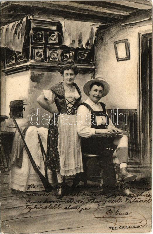 1901 Austrian folklore. Fec. Ch. Scolik, Wien (lyukak / pinholes) https://www.darabanth.com/de/429-Fernauktion/429.0/Ansichtskarten/Folklore~1500075/1901-Austrian-folklore-Fec-Ch-Scolik-Wien-lyukak-pinholes~II2750336