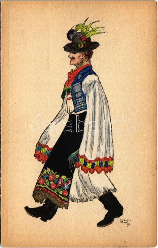 Beschreibung: Mezőkövesdi legény (Mezőkövesd) Magyar folklór művészlap / Hungarian folklore art postcard. Orbis Pictus Hungaricus. 9. s: Horváth Jenő