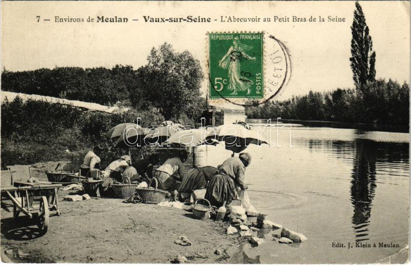 Beschreibung: Vaux-sur-Seine (Meulan), l'Abreuvoir au petit Bras de la Seine / women washing clothes. TCV card (EK)