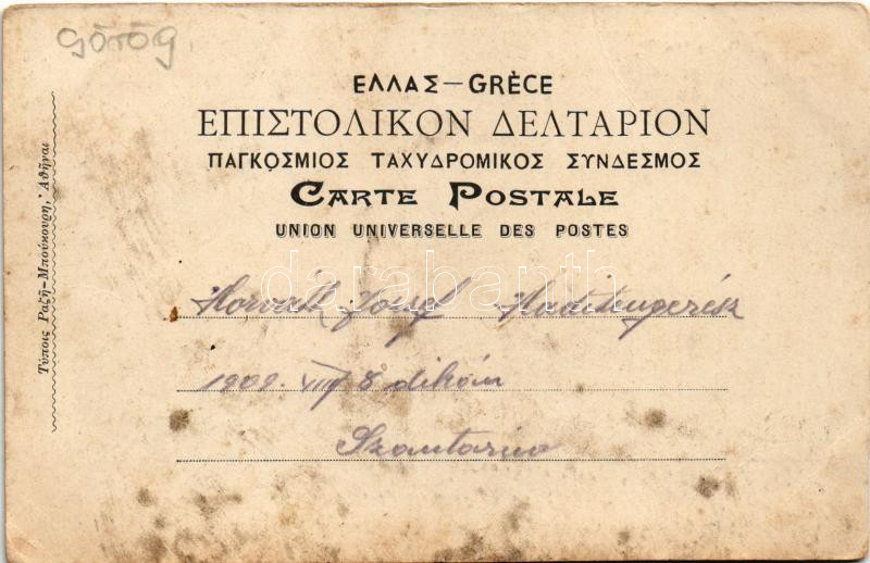 1909 Santorini, Thira; general view (cut) https://www.darabanth.com/de/429-Fernauktion/429.0/Ansichtskarten/Griechenland~1500030/1909-Santorini-Thira-general-view-cut~II2750915