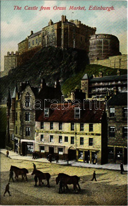 Edinburgh, The Castle from Grass Market, Black Bull Lodgings for Trave... https://www.darabanth.com/de/429-Fernauktion/429.0/Ansichtskarten/GroC39Fbritannien~1500049/Edinburgh-The-Castle-from-Grass-Market-Black-Bull-Lodgings-for-Travellers-Working-Men-Provision~II2752820