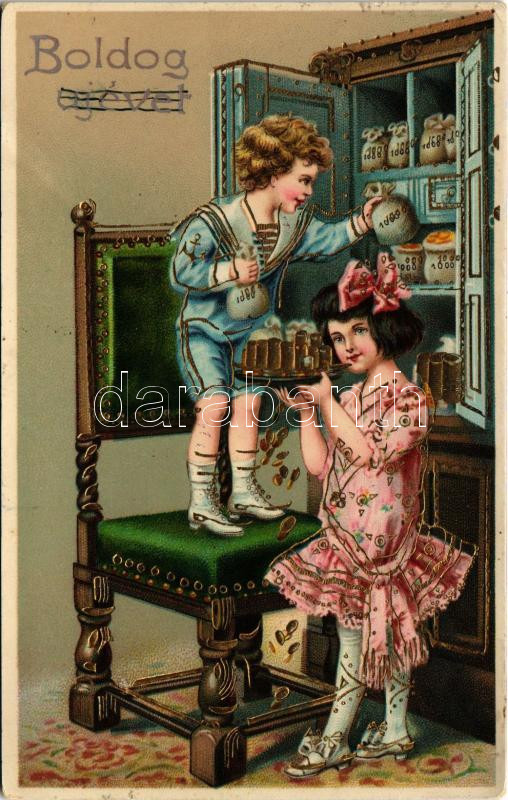 1917 Boldog Újévet! / New Year greeting art postcard with children and... https://www.darabanth.com/de/429-Fernauktion/429.0/Ansichtskarten/GruC39Fkarten-Feste~1500100/1917-Boldog-Ujevet-New-Year-greeting-art-postcard-with-children-and-bags-of-gold-litho-fa~II2756723