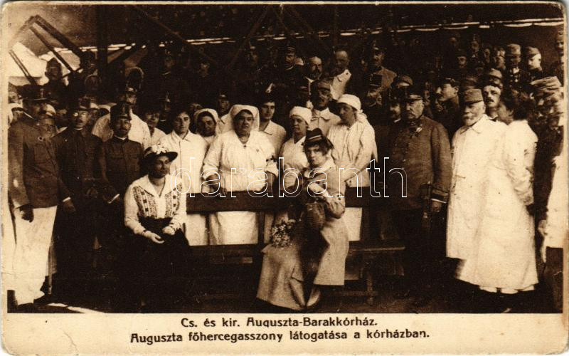 Cs. és kir. Auguszta barakk kórház, Auguszta főhercegasszony látogatás... https://www.darabanth.com/de/429-Fernauktion/429.0/Ansichtskarten/Herrscher-Politiker-Konigshauser~1500099/Cs-es-kir-Auguszta-barakk-korhaz-Auguszta-fohercegasszony-latogatasa-a-korhazban-Kiadja-~II2755342