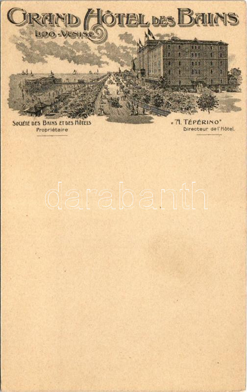 Venezia, Venice; Grand Hotel des Bains Lido-Venise / beach, hotel adve... https://www.darabanth.com/de/429-Fernauktion/429.0/Ansichtskarten/Italien~1500052/Venezia-Venice-Grand-Hotel-des-Bains-Lido-Venise-beach-hotel-advertisement-EK~II2751424