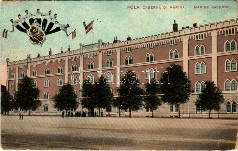 1909 Pola, Pula; Caserna di Marina / K.u.K. Kriegsmarine Marine Kasern... https://www.darabanth.com/de/429-Fernauktion/429.0/Ansichtskarten/Kriegsschiffe~1500077/1909-Pola-Pula-Caserna-di-Marina-KuK-Kriegsmarine-Marine-Kaserne-Osztrak-magyar-haditenger~II2756763