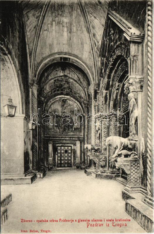Trogir, Trau; Zborno-opatska crkva, Pridvorje s glavnim ulazom i vrata... https://www.darabanth.com/de/429-Fernauktion/429.0/Ansichtskarten/Kroatien~1500009/Trogir-Trau-Zborno-opatska-crkva-Pridvorje-s-glavnim-ulazom-i-vrata-krstionice-Ivan-Belas-abbe~II2751453