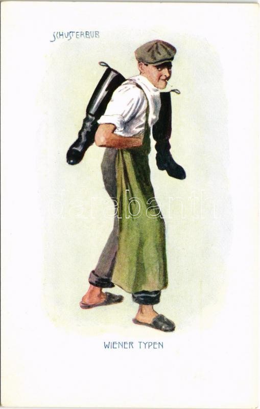 Wiener Typen: Schusterbub / Bécsi típusok: cipész inas / Viennese type... https://www.darabanth.com/de/429-Fernauktion/429.0/Ansichtskarten/Kunstlerkarten~1500090/Wiener-Typen-Schusterbub-Becsi-tipusok-cipesz-inas-Viennese-types-shoemaker-boy-BKWI-~II2616238