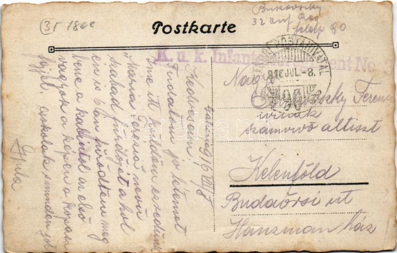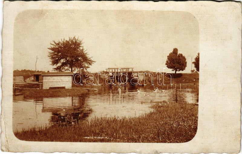 1916 Galícia, "Mária Terézia szabad fürdő", magyar katonák fürdőzés közben / WWI K.u.k. military field spa, soldiers bathing in Galicia. photo + "K.u.k. Infanterieregiment No. 32." (EK)