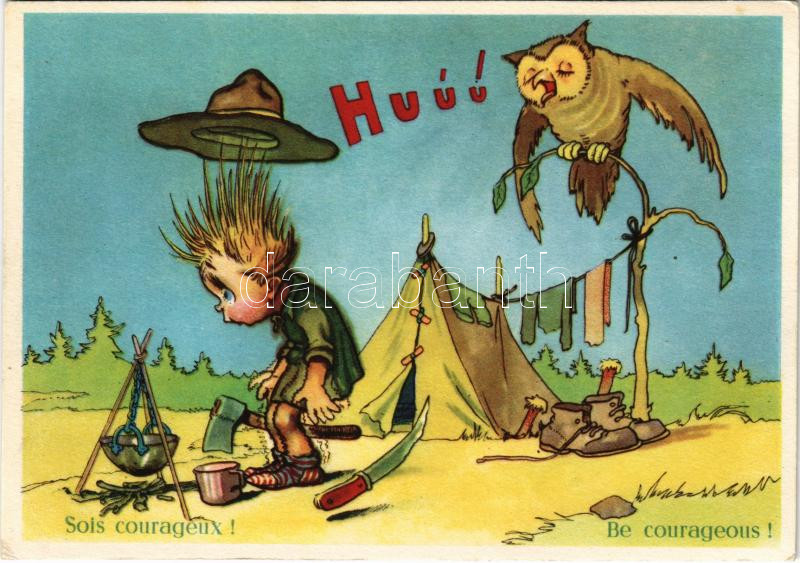 Sois courageux! / Be courageous! French boy scout and owl (EK) https://www.darabanth.com/de/429-Fernauktion/429.0/Ansichtskarten/Pfadfinder~1500070/Sois-courageux-Be-courageous-French-boy-scout-and-owl-EK~II2756628