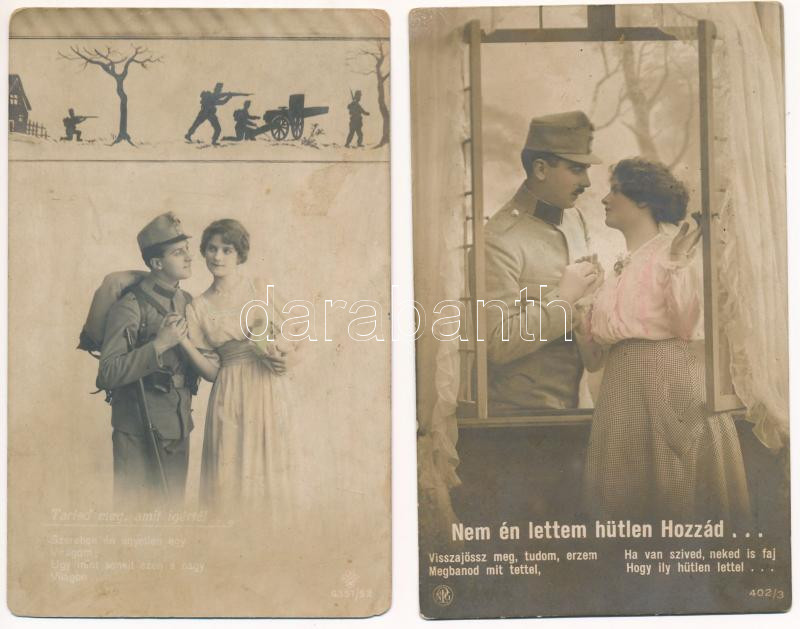 2 db RÉGI képeslap: katona és kedvese / 2 pre-1945 motive postcards: K... https://www.darabanth.com/de/429-Fernauktion/429.0/Ansichtskarten/Postkartensammlungen-Lose~1500003/2-db-REGI-kepeslap-katona-es-kedvese-2-pre-1945-motive-postcards-KuK-soldier-and-his-love~II2749917
