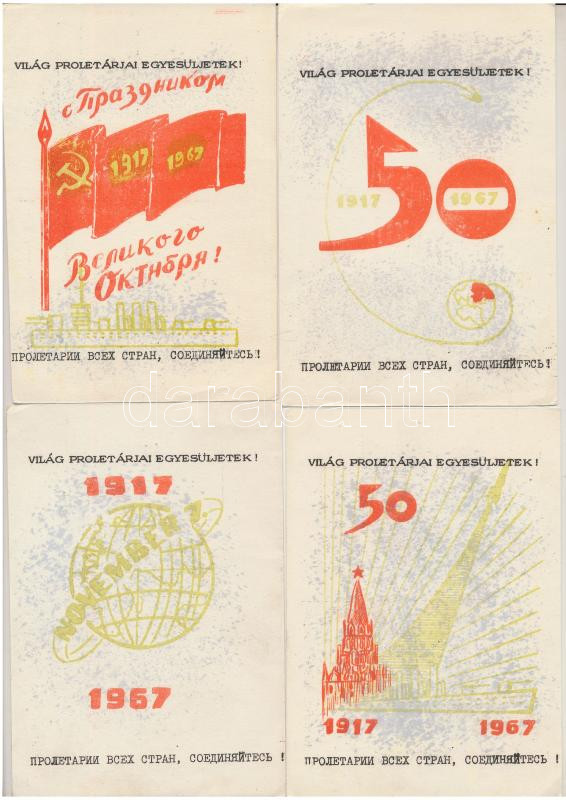 1917-1967 Világ Proletárjai Egyesüljetek! - 4 db modern kommunista propaganda képeslap / Workers of the world, unite! - 4 modern communist propaganda postcards
