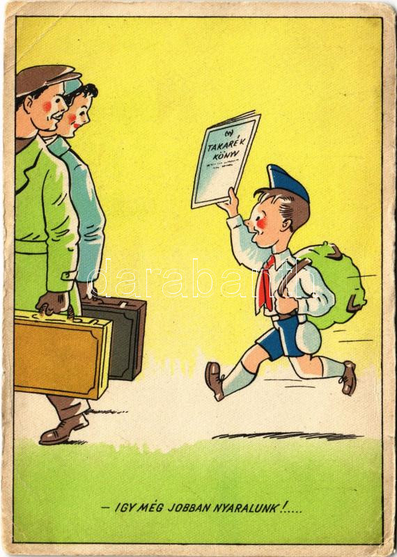 Így még jobban nyaralunk! Takarékkönyv, úttörő / Hungarian socialist p... https://www.darabanth.com/de/429-Fernauktion/429.0/Ansichtskarten/Propaganda-Politik~1500091/Igy-meg-jobban-nyaralunk-Takarekkonyv-uttoro-Hungarian-socialist-propaganda-Hungarian-Pi~II2756687