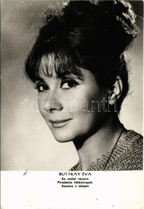 Ruttkay Éva. Az utolsó vacsora, Pirosbetűs hétköznapok, Asszony a tele... https://www.darabanth.com/de/429-Fernauktion/429.0/Ansichtskarten/Schauspieler-Schauspielerin~1500097/Ruttkay-Eva-Az-utolso-vacsora-Pirosbetus-hetkoznapok-Asszony-a-telepen-non-PC-EB~II2748457