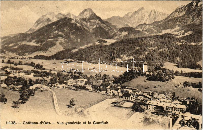 1908 Chateau-d'Oex, Vue générale et la Gumfluh (EK) https://www.darabanth.com/de/429-Fernauktion/429.0/Ansichtskarten/Schweiz~1500058/1908-Chateau-dOex-Vue-generale-et-la-Gumfluh-EK~II2750075