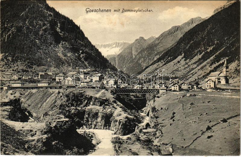 Beschreibung: Göschenen, mit Dammagletscher / general view with glacier, railway station, bridge (wet damage)