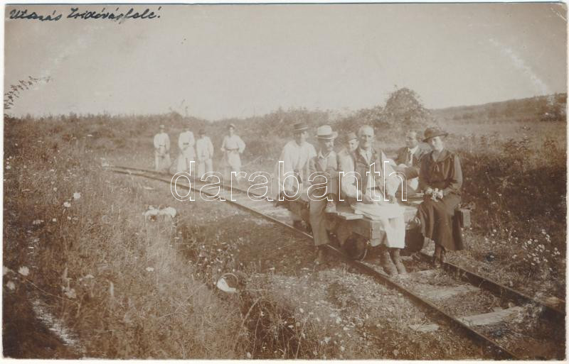 1917 Zsidóvár, Jdioara; vasúti kirándulás hajtányon Karánsebesről Zsidóvár felé / railway trip from Caransebes to Jdioara on a rail car, draisine. photo (EK)