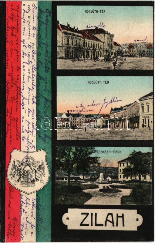 Zilah, Zalau; Kossuth tér, üzletek, Szikszai park, magyar zászló és cí... https://www.darabanth.com/de/429-Fernauktion/429.0/Ansichtskarten/Siebenburgen~1500006/Zilah-Zalau-Kossuth-ter-uzletek-Szikszai-park-magyar-zaszlo-es-cimer-Molnar-Lajos-kiadC3~II2755405