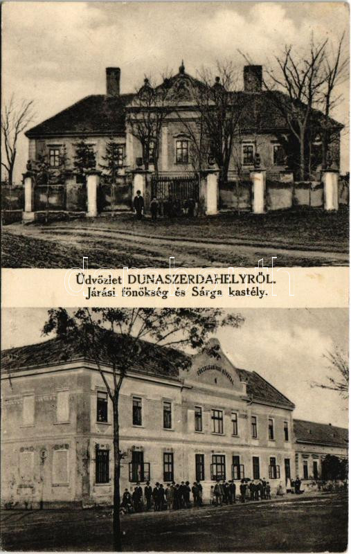 Dunaszerdahely, Dunajská Streda; Járási főnökség és Sárga kastély, Főszolgabírói hivatal. Brunner Adolf felvétele. Haar Zsigmond kiadása / castle, court (fl)