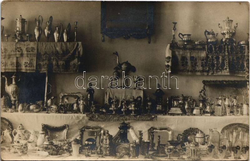 Beschreibung: Eperjes, Presov; Hadiemlék és Műkiállítás, antik áruk / War Memorial and Art Exhibition, antique goods. photo (EK)