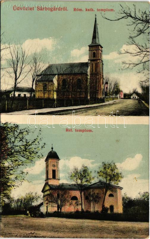 1913 Sárbogárd, Római katolikus templom, Református templom (EB) https://www.darabanth.com/de/429-Fernauktion/429.0/Ansichtskarten/Ungarn~1500005/1913-Sarbogard-Romai-katolikus-templom-Reformatus-templom-EB~II2749658