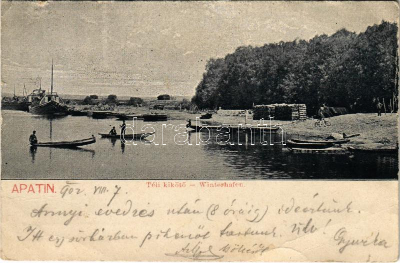 1902 Apatin, Téli kikötő. Gasz M. kiadása / Winterhafen / winter port ... https://www.darabanth.com/de/429-Fernauktion/429.0/Ansichtskarten/Vojvodina~1500010/1902-Apatin-Teli-kikoto-Gasz-M-kiadasa-Winterhafen-winter-port-EB~II2755197