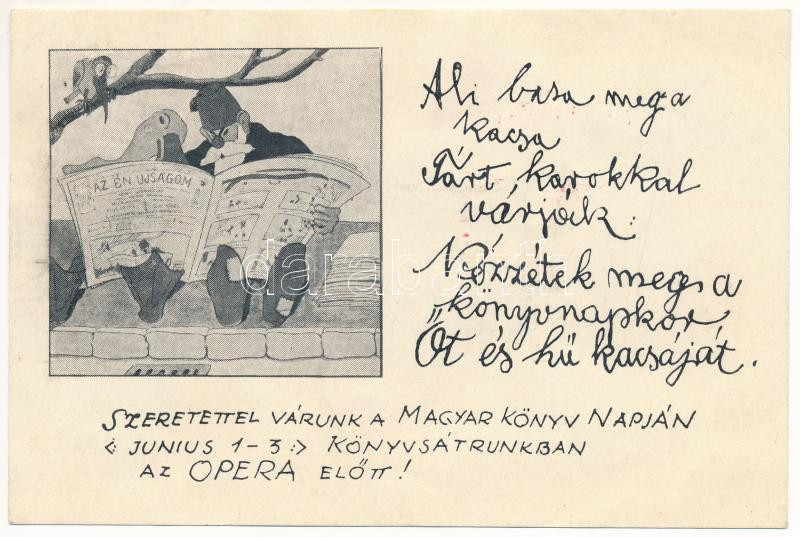 1933 Az Én Újságom reklám. Szeretettel várunk a Magyar Könyv napján kö... https://www.darabanth.com/de/429-Fernauktion/429.0/Ansichtskarten/Werbungen~1500092/1933-Az-En-Ujsagom-reklam-Szeretettel-varunk-a-Magyar-Konyv-napjan-konyvsatrunkban-az-Oper~II2755078