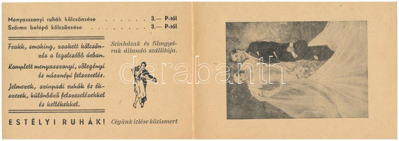 1940 Első Budai Jelmezkölcsönző kinyitható reklámlapja. Budapest, Marg... https://www.darabanth.com/de/429-Fernauktion/429.0/Ansichtskarten/Werbungen~1500092/1940-Elso-Budai-Jelmezkolcsonzo-kinyithato-reklamlapja-Budapest-Margit-korut-3-Hungaria~II2755061